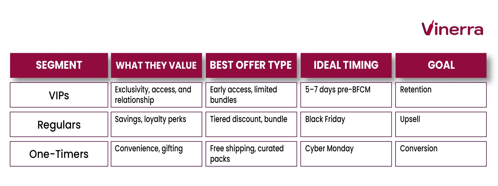 Winning wineries orchestrate multi-touch campaigns across various channels to maximize impact during Black Friday and Cyber Monday. Here’s a breakdown of key strategies to optimize your wine marketing efforts: